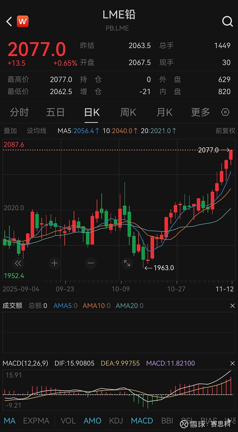 你的主业:金属铅的走势是这样的。