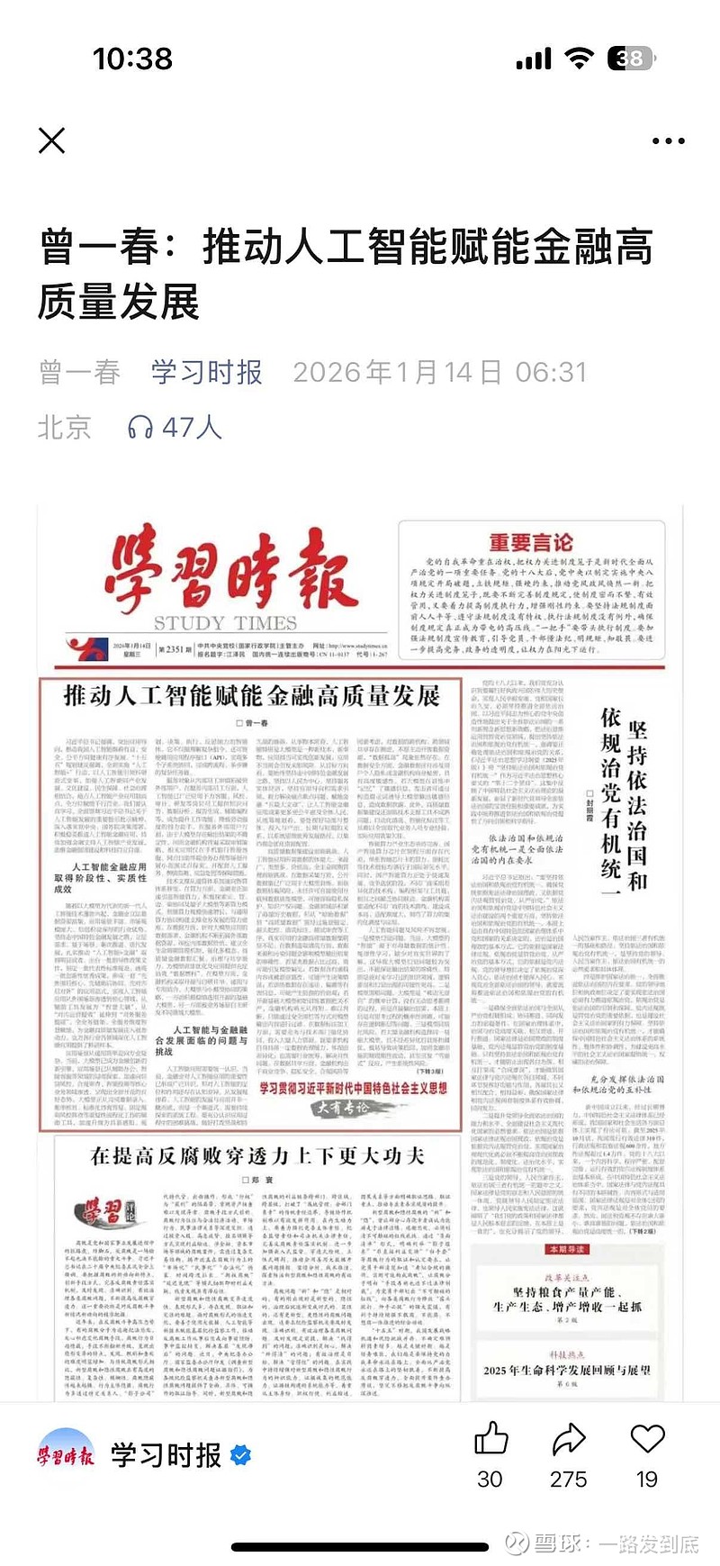 学习时报吹 ai 金融 关注