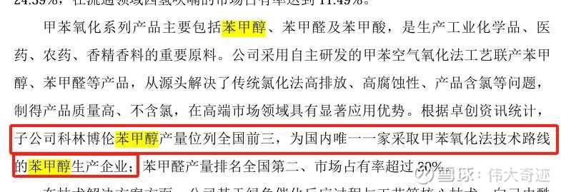 公司苯甲醇产能位于行业前列,是国内唯一一家采取甲苯氧化法技术路线生产苯甲醇的企业,子公司科林博伦苯甲醇产量位列全国前三。