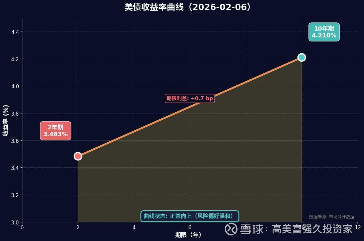 美债市场的一个最新变化,被很多人忽视了:2月6日这一天,10年期与2年期美债利差已扩大至72bp,仅次于2025年4月关税战最疯狂时的7