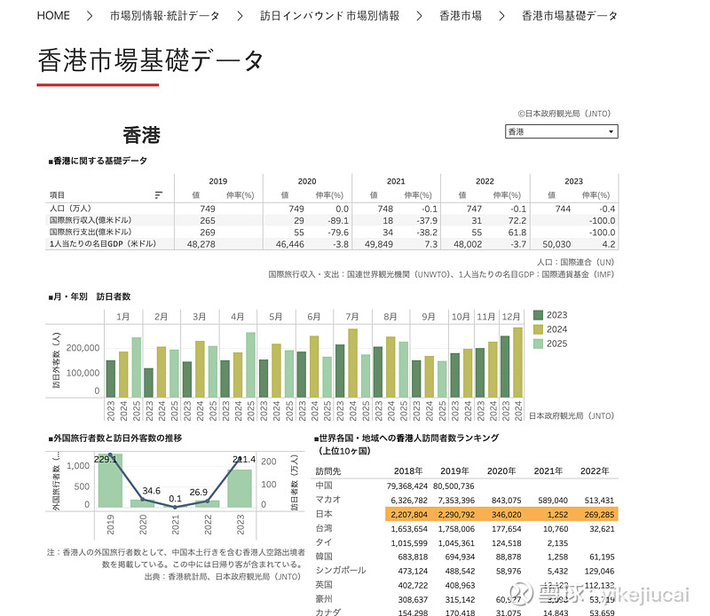 4. 18-19年,香港到日本每年游客数220-230w,23年是211w,24年268w