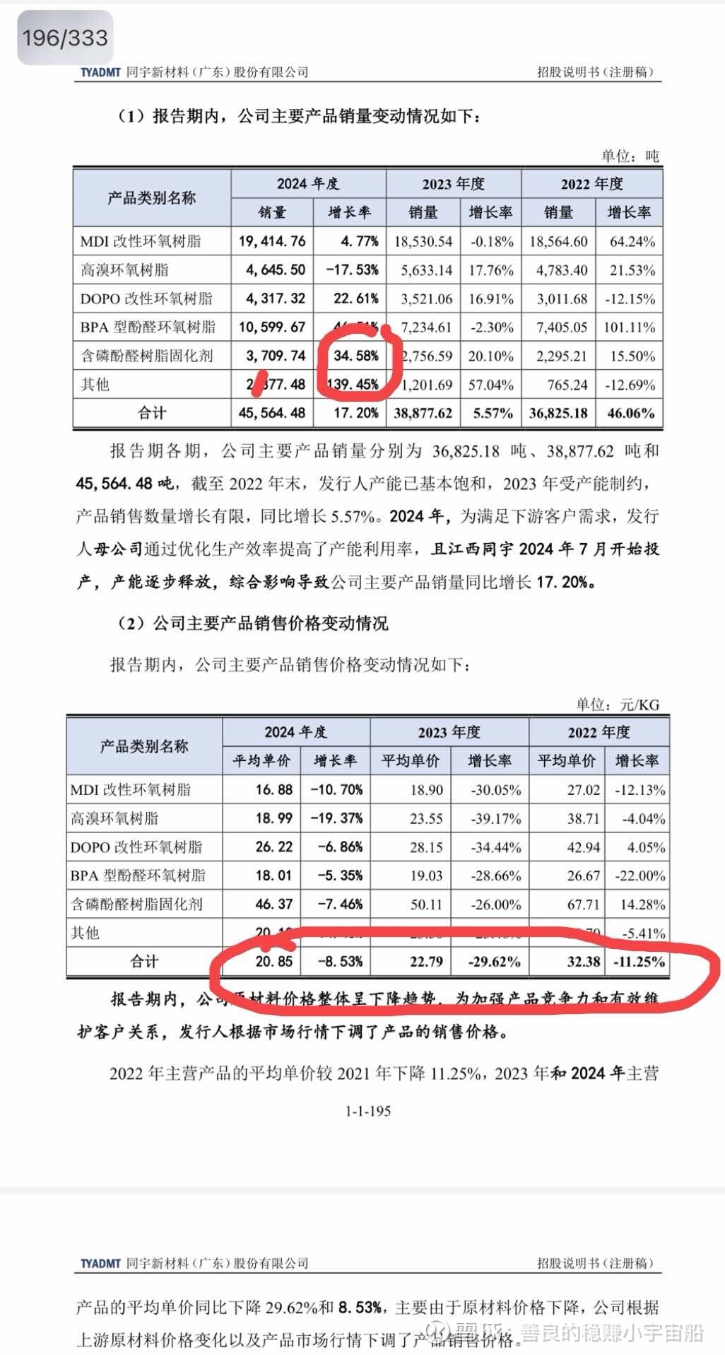 22-24的树脂价格随上游石化的走低而降价从3w/吨到2w/吨,而江西同宇的新产能大多为高端新产品,毛利率和价格大概率都会较前上涨。