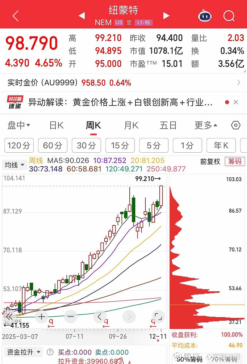 $纽蒙特矿业(NEM)$ 金价没有新高,金矿股价新高了!还是顶着三季报业绩不如预期等种种利空因素新高了!真羡慕巴菲特能在这样一个正能量的市场里面搞投资!$中金黄金(SH600489)$ $赤峰黄金(SH600988)$