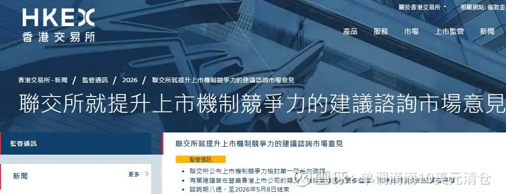3月13日,香港联合交易所正式刊发咨询文件,启动新一轮IPO制度改革,咨询期为期八周,至2026年5月8日结束。这是港交所继2018年上市制度革新后,推出的又一次全面且详尽的制度性优化,覆盖同股不同权、中概回流、秘密递表、中介问责等核心领域,旨在对标国际、提升市场吸引力,巩固香港国际金融中心地位。