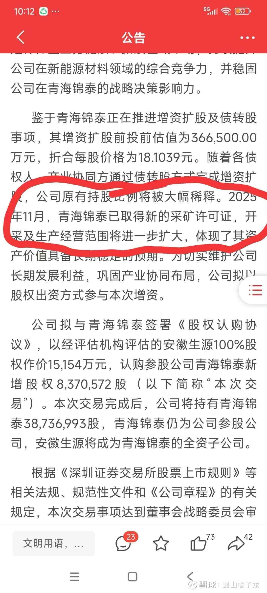 $兆新股份(SZ002256)$ 以子公司入股增加锦泰880万股,持股比例达18%,而且公告里明确告之,公司已取得采矿证,接下来就可以着手盐湖提锂和稀土开采,实际上,公司看重的不是锦泰的15万T钾肥,而是锦泰盐湖450平方公里的锂资源和地底下的稀土,你可曾见过4元的盐湖提锂+稀土股?珍惜手中的筹码吧