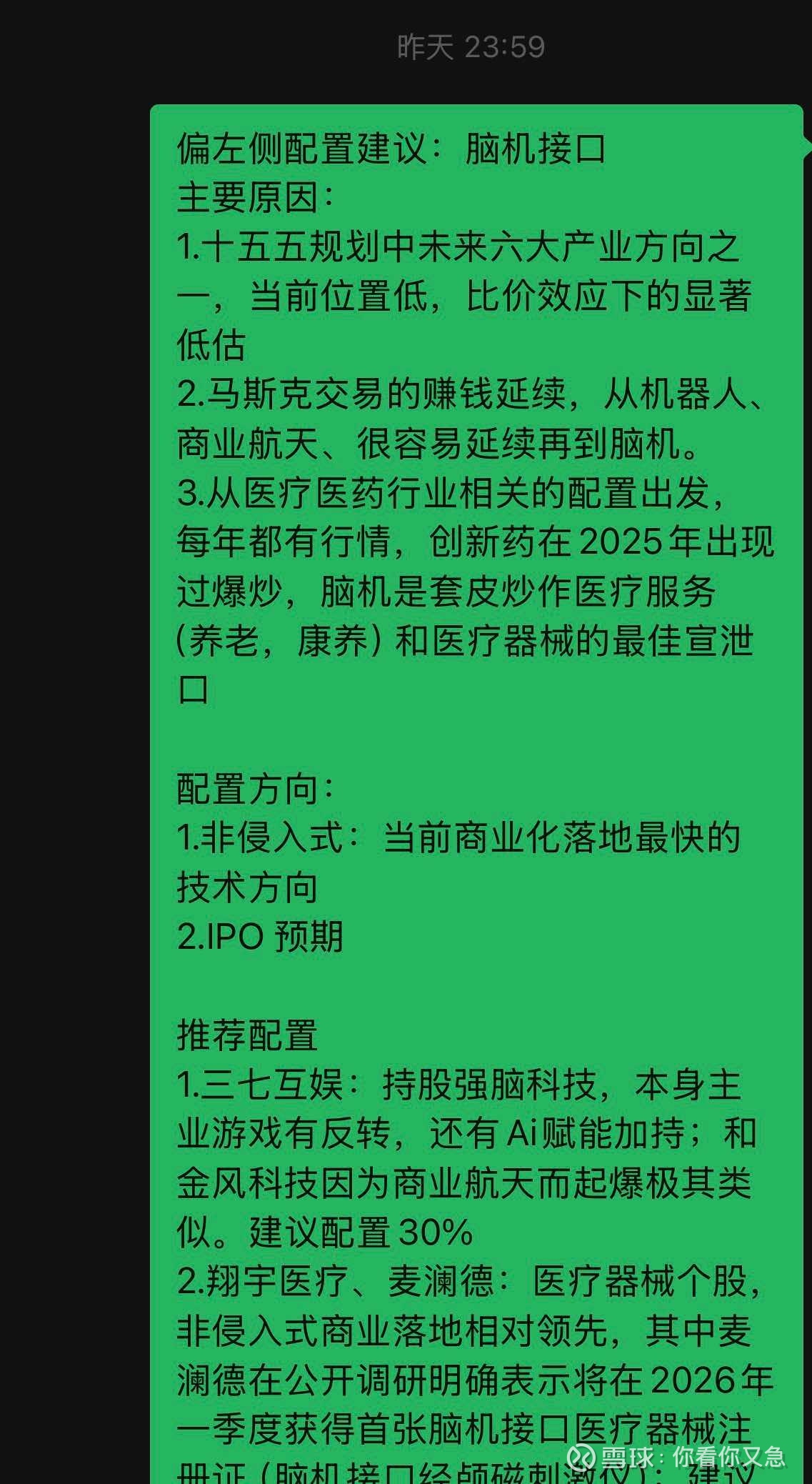 3.从医疗医药行业相关的配置出发,每年都有行情,创新药在2025年出现过爆炒,脑机是套皮炒作医疗服务(养老,康养)和医疗器械的最佳宣泄口