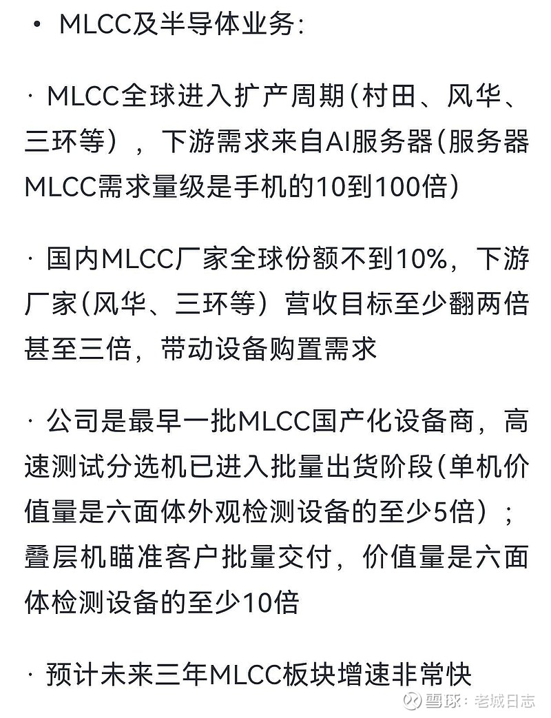 国内MLCC厂家全球份额不到10%,下游厂家(风华、三环等)营收目标至少翻两倍甚至三倍,带动设备购置需求