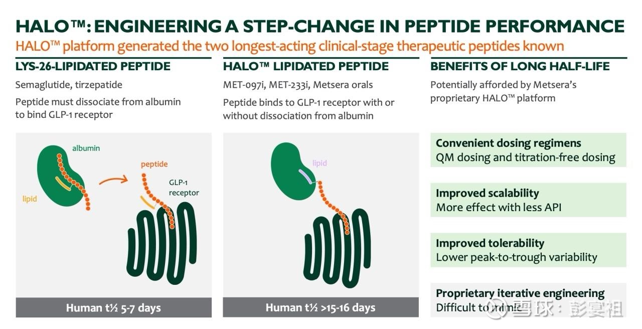 司美格鲁肽和替尔泊肽的口服肽脂化技术采用的是将一个16碳酰基部分通过γ-谷氨酸间隔基与Lys-26侧链结合,使得多肽在人体中半衰期只有5-7天。而metsera则是采用更加先进的技术通过C18二酸侧链修饰GLP-1,使得半衰期时间达到了15-16天。目前全球只有药明康德的工艺水平能够达到并大规模生产查看图片