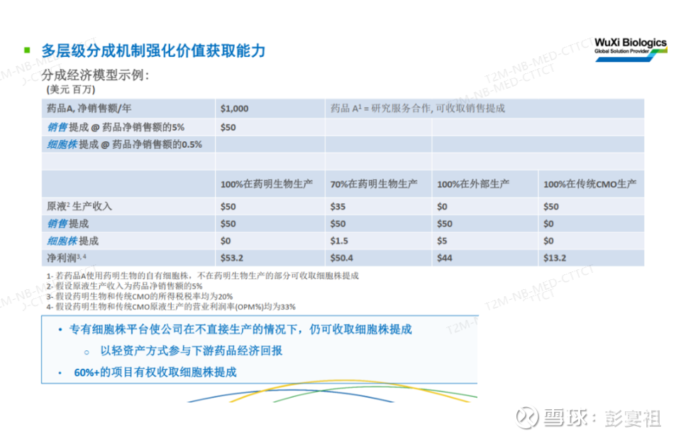 我们以一款生物药年销售额10亿美元的平均水平为例。如果我们享有5%的特许权使用费,那就意味着在大约10年的周期内,仅销售分成一项,我们每年就能获得5000万美元收入。这部分是来自我们前期研发的销售提成。此外,如果客户后续交由我们生产,我们将免收细胞系使用费;但如果客户不在我们这里生产,我们则会收取细胞系特许权使用费。