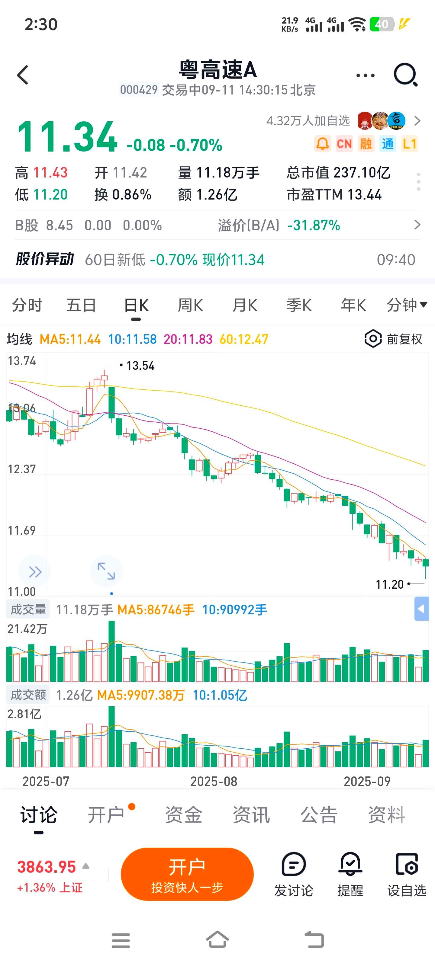 粤高速A:已亏损10%