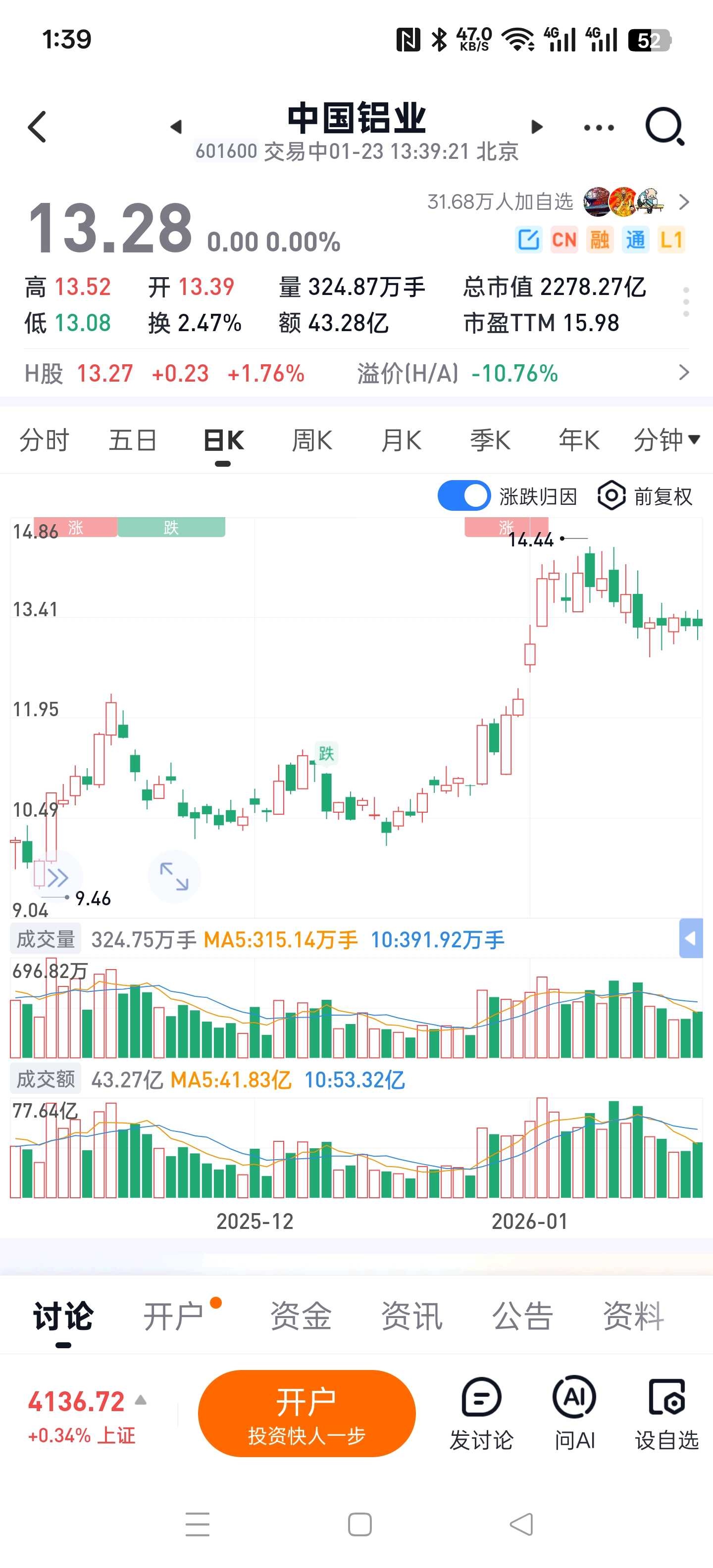 中国铝业、南山铝业:一涨一跌