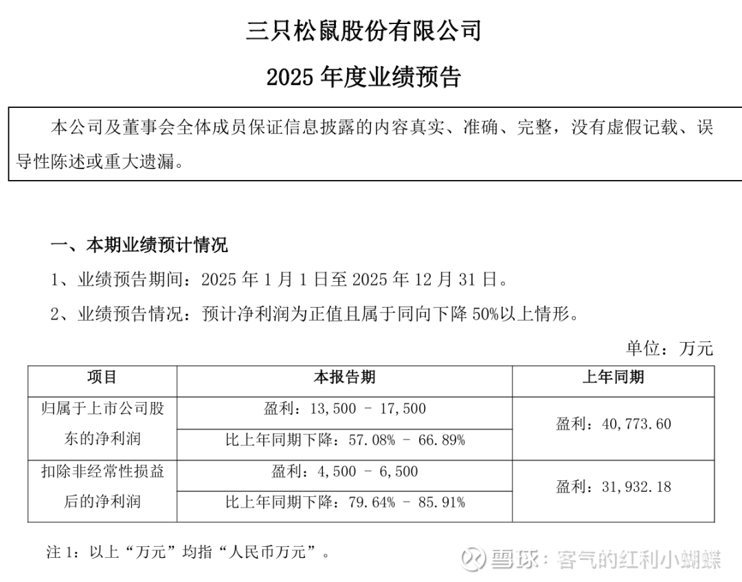 以洽洽食品、良品铺子、三只松鼠为代表的传统零食巨头普遍遭遇业绩“滑铁卢”。洽洽食品预计2025年归母净利润同比下滑超60%;良品铺子扣非净利润亏损额同比扩大160%至247%;三只松鼠预计归母净利润同比下降57.08%-66.89%。