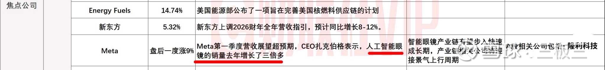 Meta盘后大涨超6%,Meta第一季度营收展望超预期,CEO扎克伯格表示,人工智能眼镜的销量去年增长了三倍多