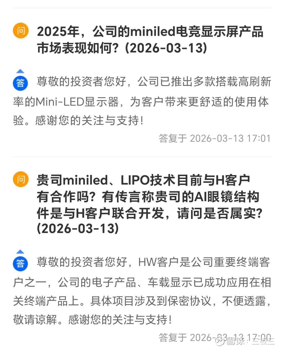 · 关于客户合作的确认:隆利科技强调与Meta保持着紧密的合作关系(主要集中在VR背光产品)。