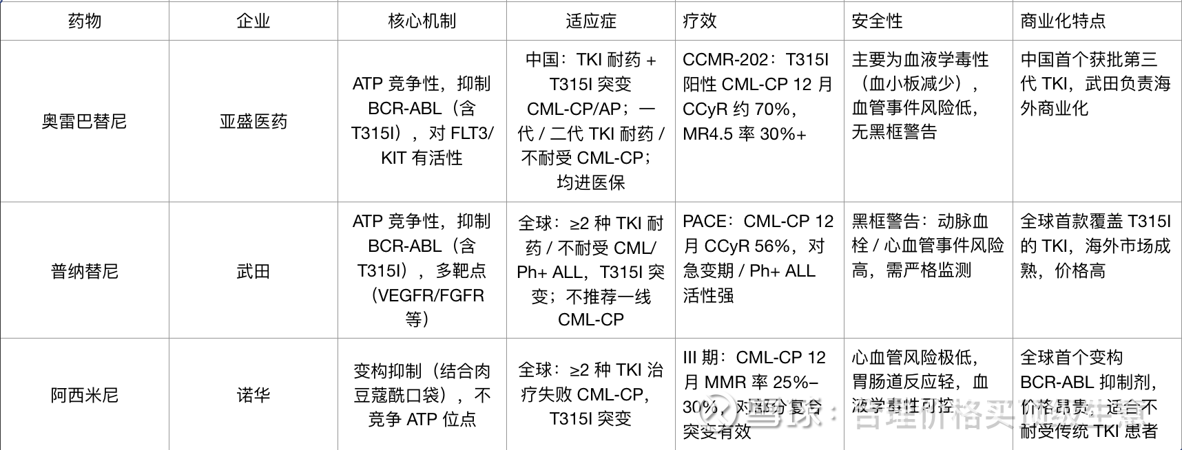 奥雷巴替尼:中国医保内 T315I 突变 CML 的首选,安全可控,海外由武田推进,适合亚洲人群。