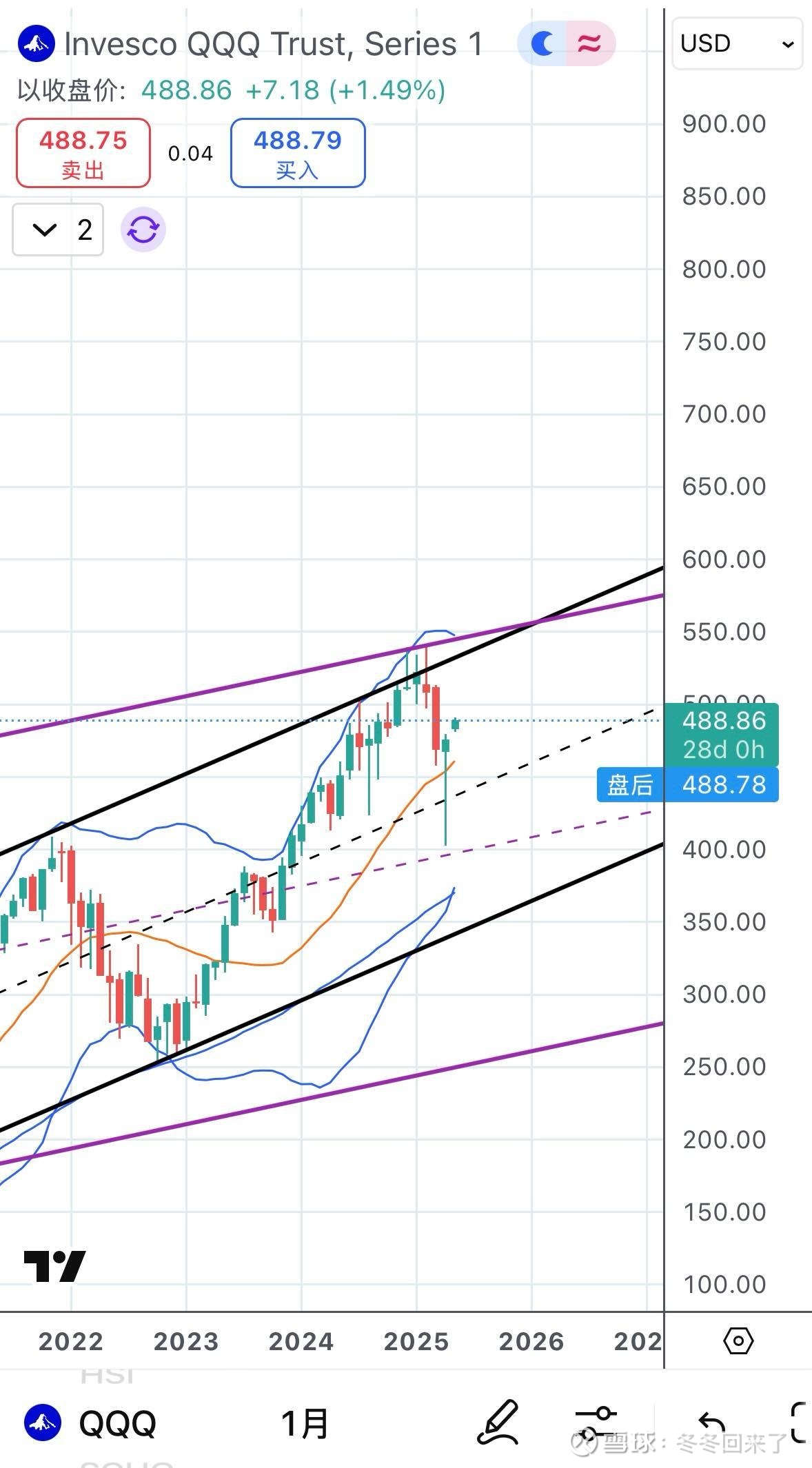 $纳指100ETF-Invesco(QQQ)$ 救起来了 也就是上次复盘说到的 第一波下来之后 一般情况可以救起来 往后拖一拖的 那看起来确实有机会 这样其实无论对多头还是空头都很好 给了多头止盈和波段的机会 也给了空头更好的找高点的机会 如果后续可以继续缓慢上行 再次摸到上升通道 那可能就是再一次出现大跌的机会 现在大盘的思路就是走一步看一步 不适合特别重仓 得有波段![]()