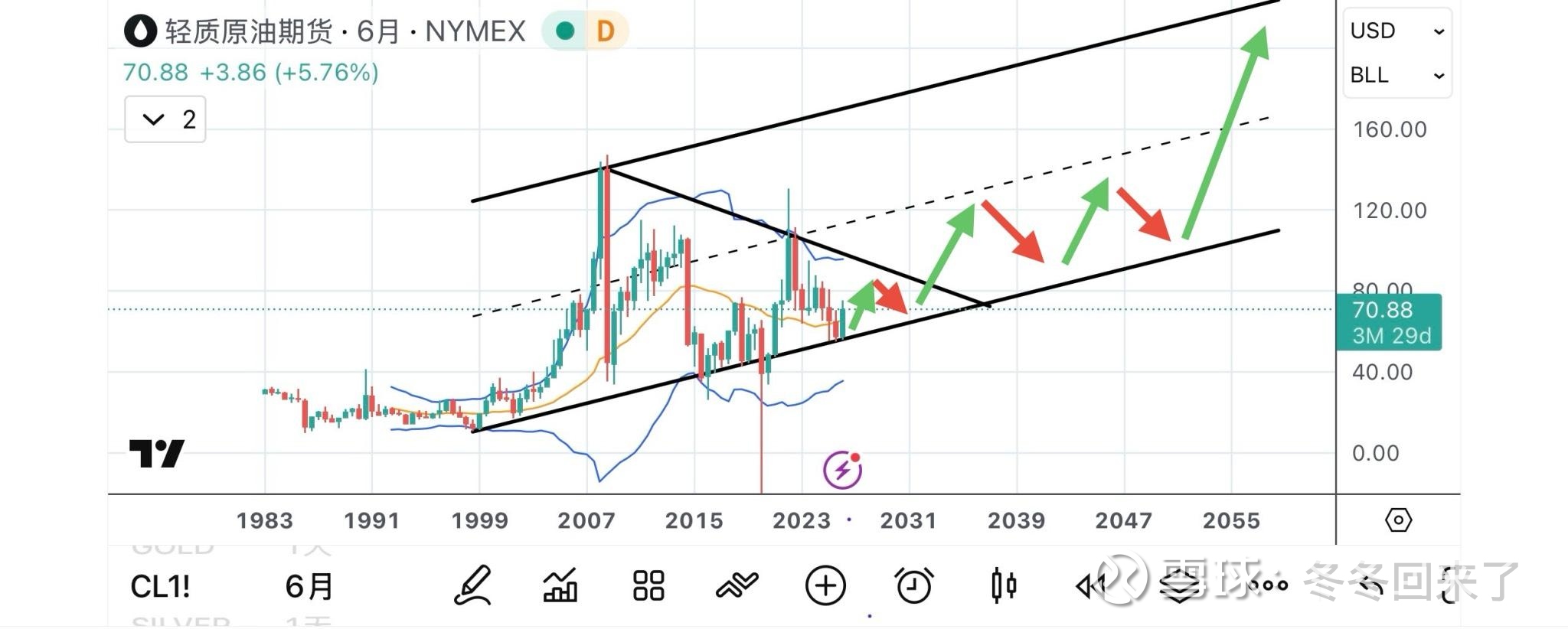 我对于整个油价的判断 和前几年对于大A的判断类似 是一个超大级别收敛接近尾声 大A今年已经突破了 之前发帖聊到过 那石油还没有 但是也已经接近尾部了