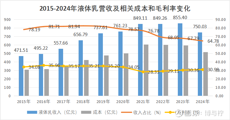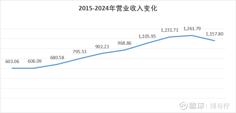 2015-2024 年,伊利营收从603.06亿增长至1157.80亿元,十年间实现近乎翻倍增长,整体呈现长期向上的发展态势。