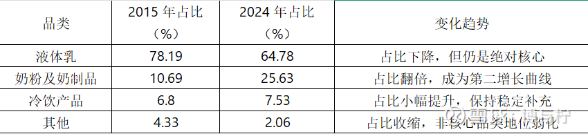 过去十年伊利成功地从一家由液体乳绝对主导的公司,转型为以液体乳为稳固基本盘,以奶粉及奶制品为强劲第二增长曲线,并以冷饮和其他健康食品为多元补充的综合性健康食品集团。