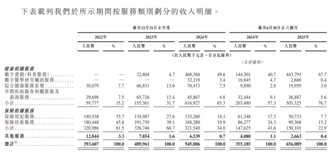 由于2023年开始提供数字营销(科普服务)及2024年客户的需求激增。公司来自健康相关服务的收入由2022年的人民币5980万元大幅增加至2023年的1.55亿元,并进一步增加至2024年的人民币6.17亿元。