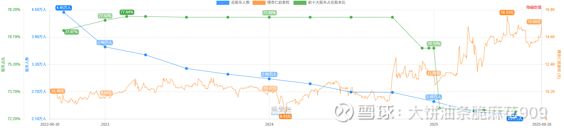 股东人数:股东人数下降是真的,前十大股东占比下降主要是增发导致的,没有什么实质性减持。十大里绿油油的实际增减持,应该是送转计算抹尾数导致的。