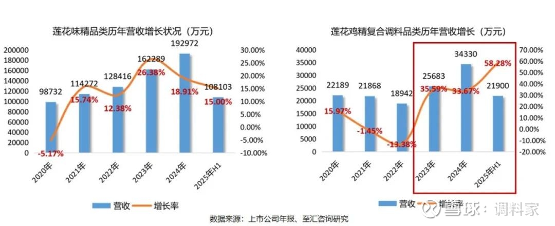 该公司的鸡精品类也是从2023年开始迅猛上涨,今年上半年增长了58.28%,不过,这里边含了松茸鲜类调料。