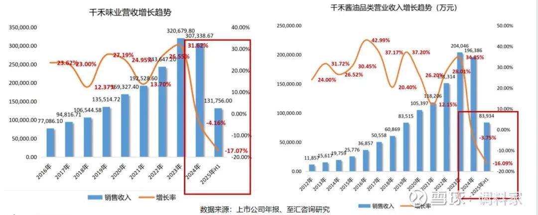 而千禾的酱油,在2024年以前,一直保持高速增长。2012年时,其酱油仅有1.19亿的营收,而到2023年已经增长到20.4亿。但2024年,其酱油营收出现了3.75%的下降,今年上半年下降更是达到16.095。