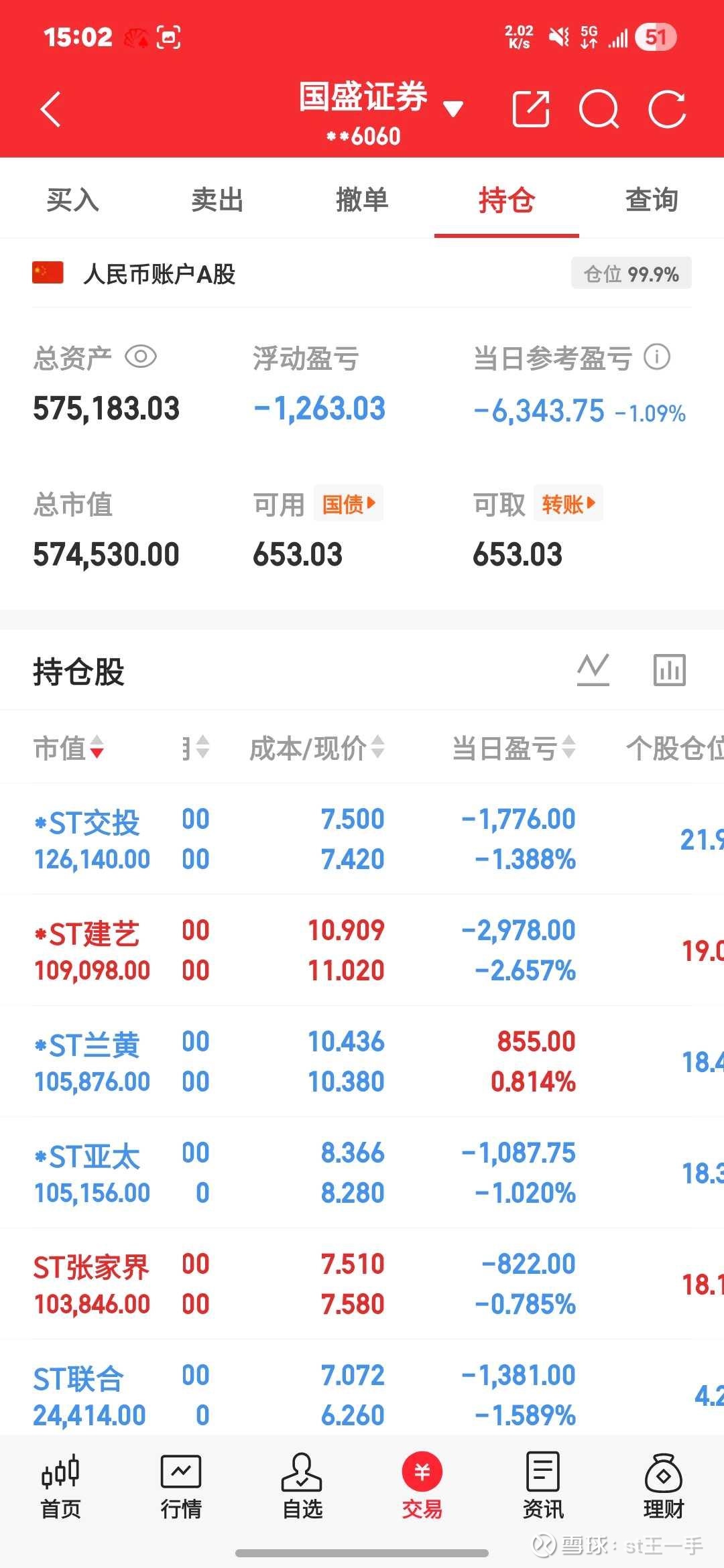 回看今天A股整体走势,市场呈现高开低走、震荡回落格局,上证指数盘中一度冲高,随后承压下行,尾盘收在4050点附近,个股涨跌分化明显,整体情绪有所降温,不少板块出现短线回调。村里今天有没有出手入场护盘?从盘面走势来看,指数在关键点位依旧有明显承接,资金护盘意图清晰,只是当前市场以震荡消化筹码为主,并未出现大举进攻的态势。即便今日行情有所波动,我依旧对后市保持坚定看好,坚信本周指数站稳4000点。面对当前走势,我选择满仓干,对A股后续行情信心满满,给我看好、情有独钟的ST联合,看好它后续基本面改善与预期修复(加了一手真卖不掉了)。$*ST亚太(SZ000691)$ $ST联合(SH600358)$