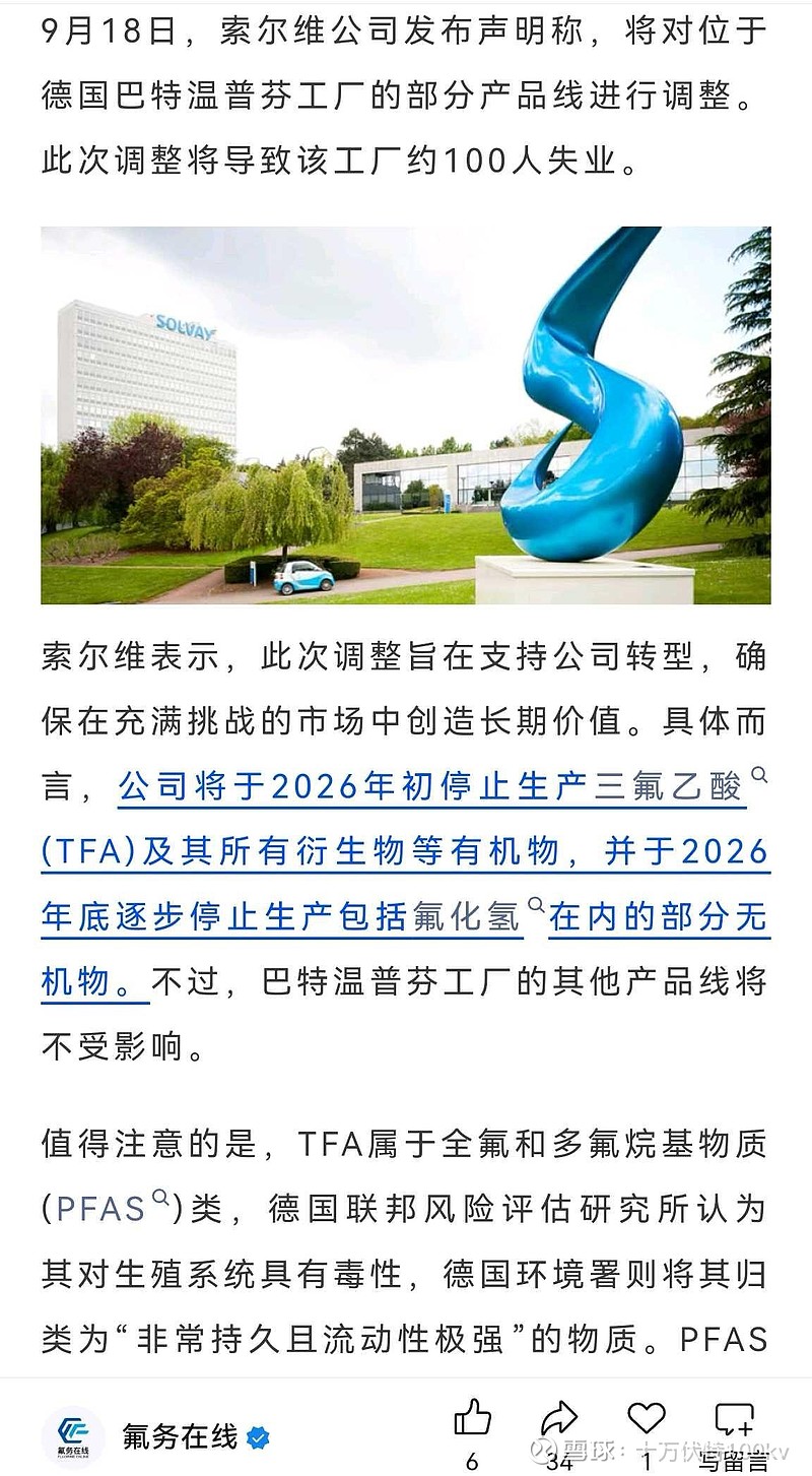 PFAS环保法案还在发酵,继3M之后,索尔维也要停产。科慕你什么时候停?