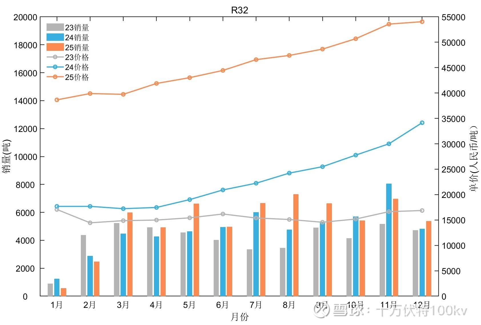 12月R32均价54047,环比+473。2025年销量对比2024年+11.9%。(不包含混配)