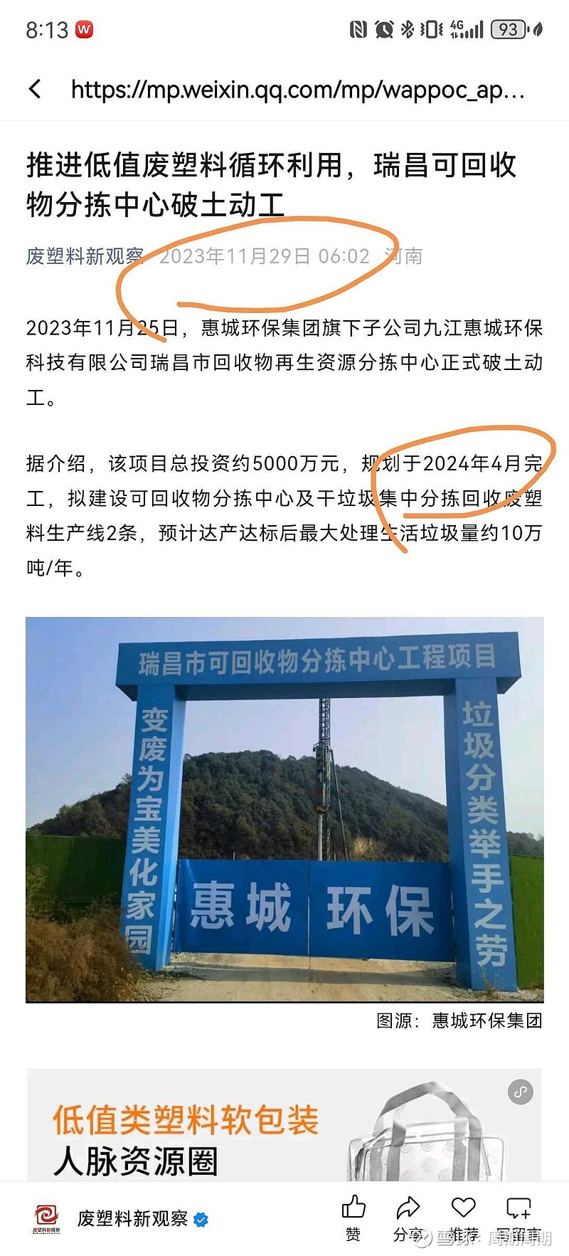 4 惠城的生活源塑料,需要和城管还有垃圾转运及发电企业去探索新机制,所以我挺关注九江瑞昌项目的,前几个月有人发帖说停了,奇怪也不奇怪,收集起来的混合垃圾可不是那么好分的,按照环保项目标准去看,当初那个示范项目的现场条件是很差的,环保投入不够。你要保证环保,那成本又兜不住。