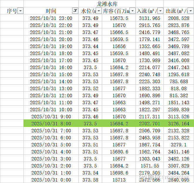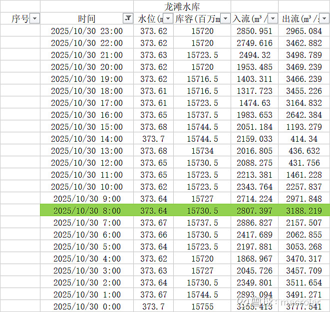 龙滩的出入库数据、水位、库容,各位自己去水利部珠江委网站发布的8时数据去做对比。