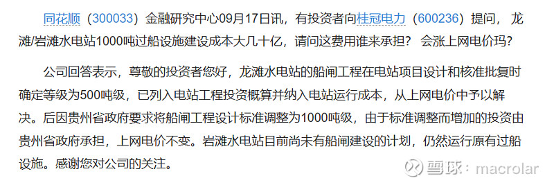 11月27日以来入库流量和出库流量比之前平时少,个人感觉红水河上下游开始控水了。搜了下得到些信息,个人估计25年年报业绩应该是0.45左右,就看此庄对电价变化后的估值怎么理解了。