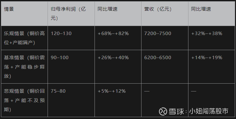 注:基准情景为最可能实现的区间,核心假设为铜价维持当前中枢、海外项目稳步推进、新能源业务如期放量。