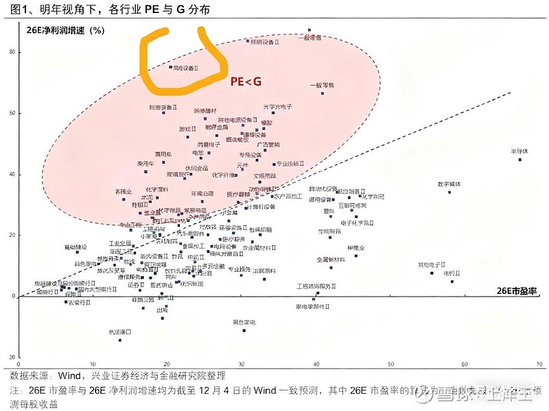 明年视角看,PE-G框架下当前估值仍相对便宜的行业主要集中在风电设备、高端制造、周期资源品、新消费等领域。