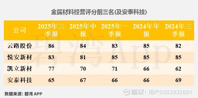 安泰科技在2025年三季报经营评分排名为第2479名,在金属材料行业中排名为6名。