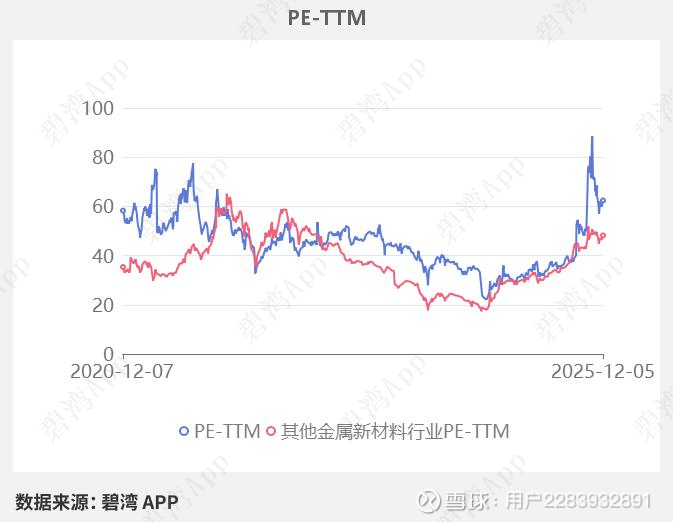 在2025年12月05日,安泰科技的PE-TTM是62.42,而其他金属新材料行业的PE-TTM是48.20,安泰科技高于其他金属新材料行业的PE-TTM。