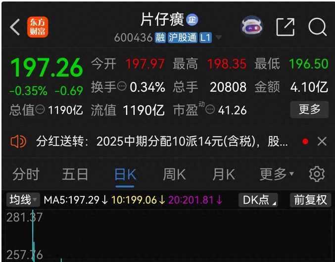 去年大盘2700点时,片仔癀股价是222元,截至周五收盘,股价只有197.26元,比大盘2700点还又下跌了11%。