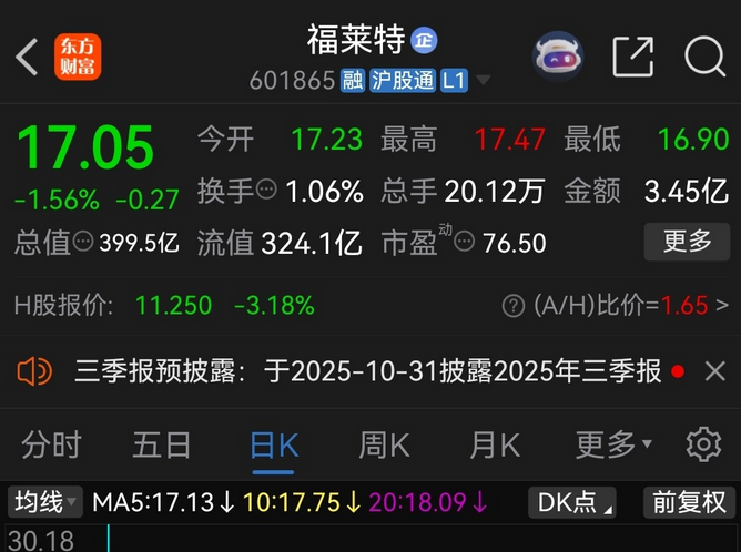 去年大盘2700点时,福莱特股价是18.25元,截至周五收盘,股价只有17.05元,低于去年2700点的位置。