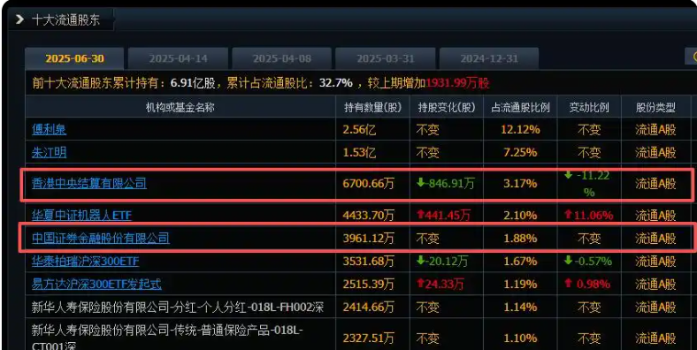从公司的前十大流通股东看,二季度,香港中央结算(北向资金)减仓846.91万股,目前仍持股6700.66万股,位列公司第四大股东;证金公司二季度持股不变,目前持有3961.12万股,位列公司第五大股东。