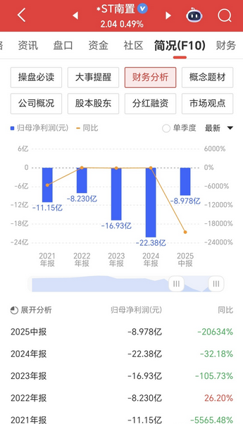 而*ST南置2024年度经审计的期末净资产为负17.53亿元,股票也因此被实施退市风险警示,如果2025年度该公司经审计的期末净资产仍为负值,届时不排除股票有被终止上市的可能,而公司剥离亏损的房地产业务也是为了下一步“保壳”而进行的动作。
