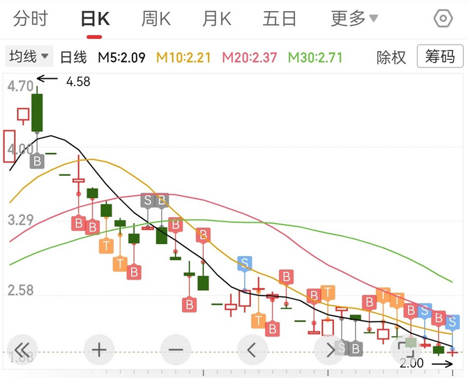 看到*ST南置最后一个多月来的跌势,谁见了都会摇头,其股价从8月19日的最高4.58元,一路跌到9月30日收盘的2.04元,期间31个交易日内的区间跌幅多达55.45%。