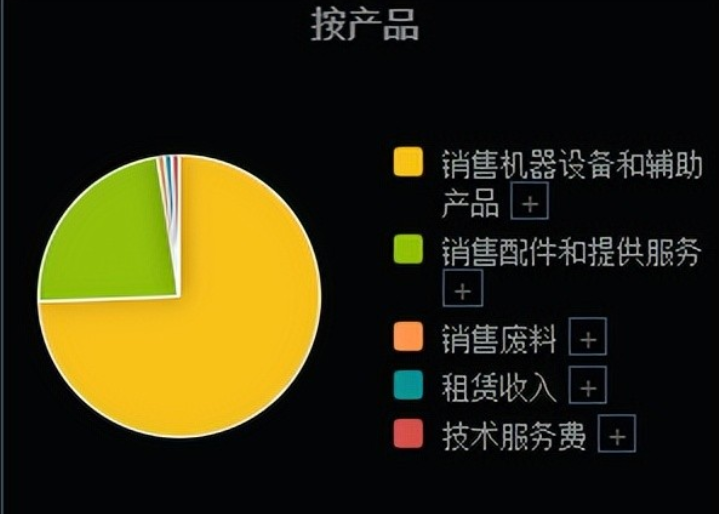 今年上半年,公司销售机器设备和辅助产品,营收占比为76.11%,不过毛利率只有8.76%,贡献了公司39.10%的营业利润;销售配件和提供服务,营收占比虽然只有23.60%,但凭借44.01%的毛利率,贡献了60.90%的营业利润。