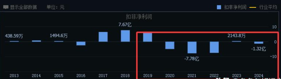 营收乃利润之母。随着营收的不断下滑,公司的扣非净利润,也开始表现得面目狰狞起来。最近五年,更是连续四年出现了大幅亏损,就是盈利的2023年,也仅是微微赚了2144万!不及前期亏损的一个零头。