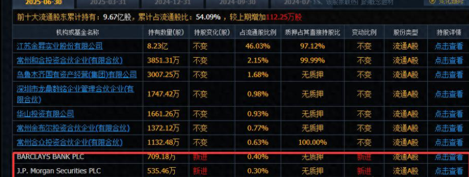 二季度,巴克莱、小摩和瑞银,分别新进了709.18万股、535.46万股、386.22万股,位列公司第8、第9和第10大流通股东。
