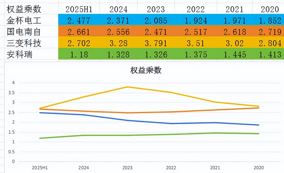 上半年,财务杠杆最高的是三变科技的2.702倍,其次是国电南自,金杯电工,安科瑞。