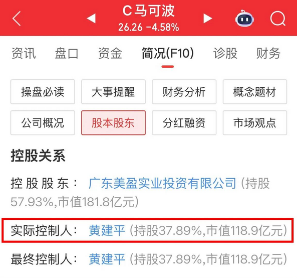 目前马可波罗的实际控制人持有马可波罗总股本比例37.89%的股份,该实控人也是马可波罗的最终控制人;同时他还持有st四通总股本比例28.25%的股份,也是st 四通的控股股东、实际控制人和最终控制人。