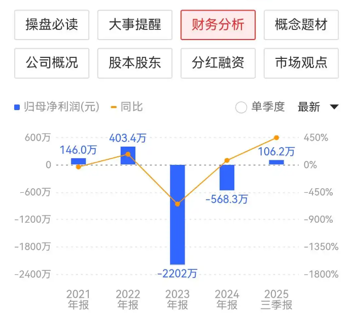 业绩上,公司最近连续两年亏损,今年三季报虽然盈利了106.2万元,到公司的营收非常低,去年只有1723万元,今年三季报更少,只有544万元。
