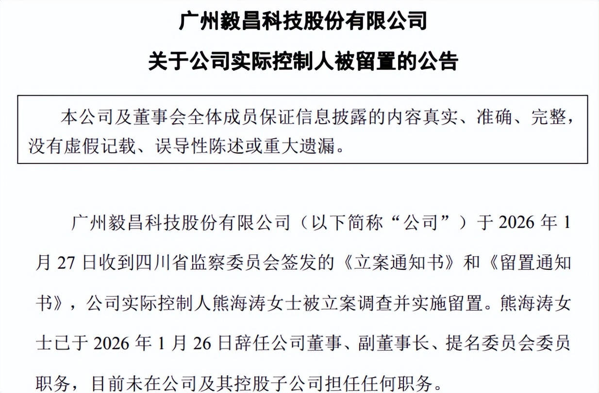 盘后突发,2家公司突然发布公告,公司实控人因涉嫌犯罪被立案调查并被实施留置。