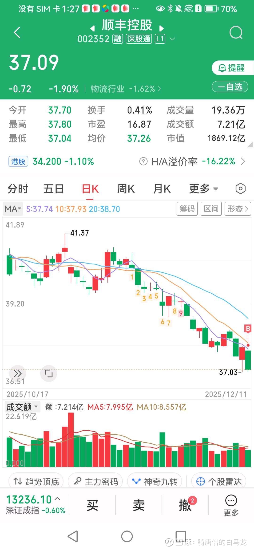 回复@骑唐僧的白马龙: 顺丰暂时一百多架飞机领先,航空物流确实顺丰领先。但是你没有看到京东海外商城一旦2026年起量,带着京东物流超越顺丰就是两三年的事情。目前海外全球化布局京东物流强于顺丰,在国内市场到天花板的情况下,不管市场份额的提升还是估值的提升需要增量,海外增量目前潜力最大应该京东物流好于顺丰,顺丰国内面临价格越来越低的情况。最近的下跌不是凭空下跌的,再过十年顺丰不会倒闭。但是估值能提升多少要看海外增量。//@骑唐僧的白马龙:回复@骑唐僧的白马龙:反正今天下午37.08的成本已入坑,和大家一起等待顺丰反转上行。